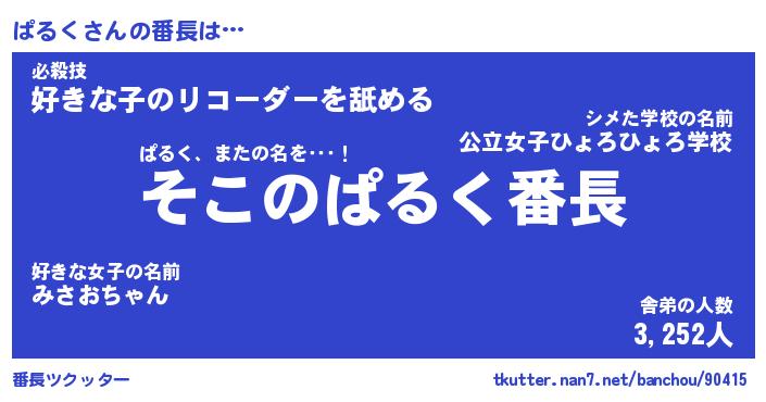 | ヒーロー風カッコイイあだ名 | 『スーパーパルク』『ウルトラぱるくマン』 |