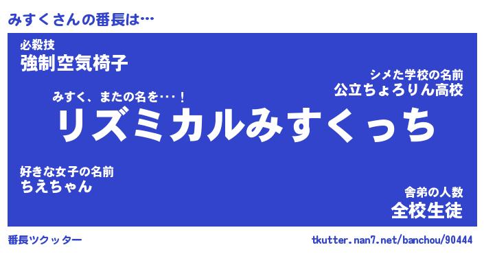| 男性向けラノベタイトル風あだ名 | 『みすくの憂鬱』 |
