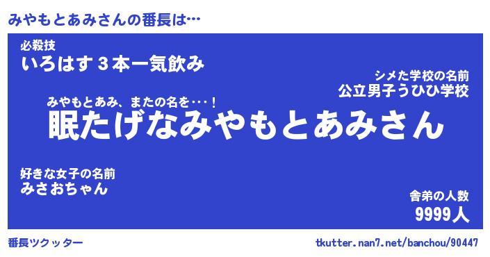 | 伝説のあだ名 | 『封印されしスナイパーみやもとあみ』 |
