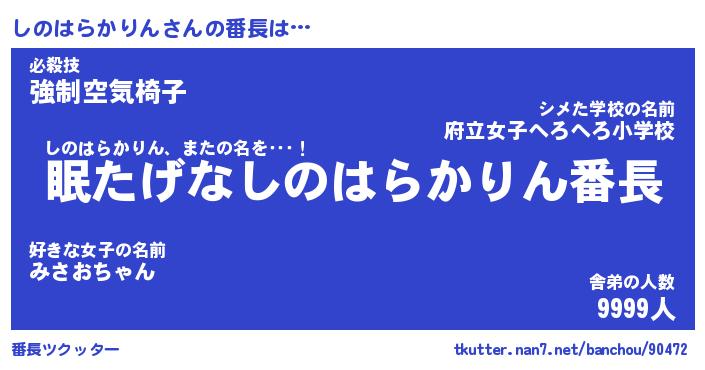 | ヒーロー風カッコイイあだ名 | 『スーパーシノハラカリン』 |