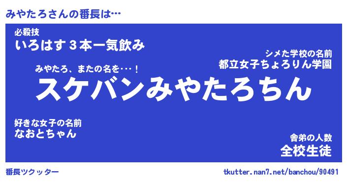 | 意味不明あだ名 | 『ペロリンみやたろ』『永久保存みやたろ』 |