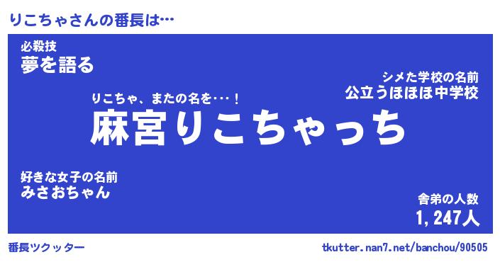 | 意味不明あだ名 | 『ペロリンりこちゃ』『永久保存りこちゃ』 |