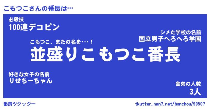 | 伝説のあだ名 | 『不死鳥のスナイパーこもつこ』 |