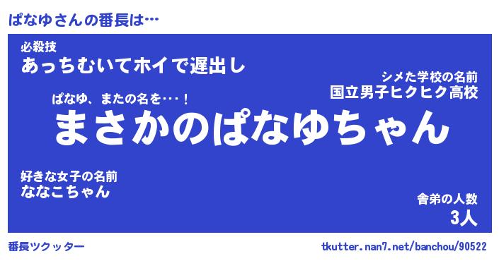 | 意味不明あだ名 | 『ペロリンぱなゆ』『ぱなゆフォーエバー』 |