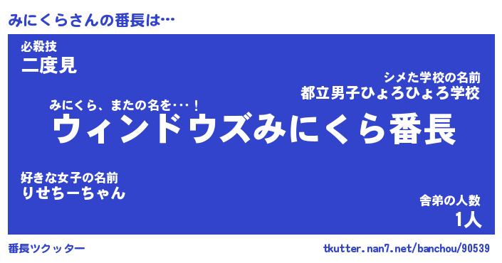 | 伝説のあだ名 | 『伝説のスナイパーみにくら』 |