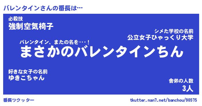 | ヒーロー風カッコイイあだ名 | 『スーパーバレンタイン』『魔戒騎士バレ』 |