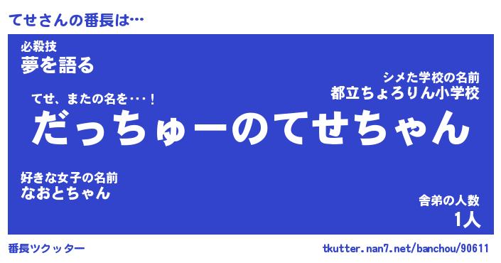 | ヒーロー風カッコイイあだ名 | 『スーパーテセ』『ウルトラてせマン』 |