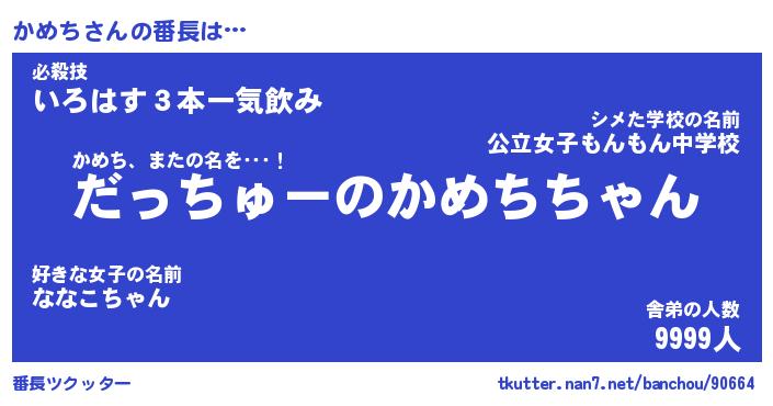 | ヒーロー風カッコイイあだ名 | 『スーパーカメチ』『ウルトラかめちマン』 |