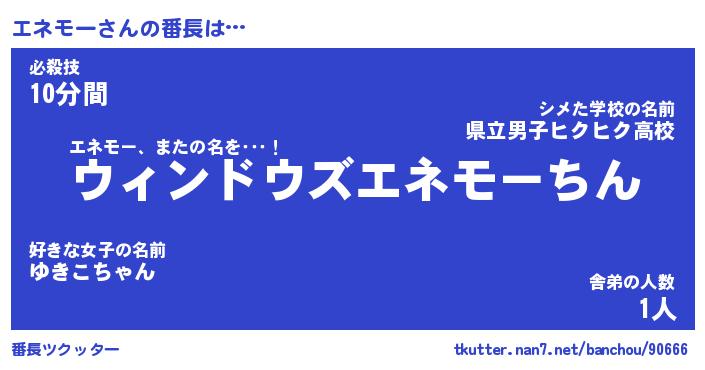 | ヒーロー風カッコイイあだ名 | 『スーパーエネモー』『黄金騎士エネ』 |