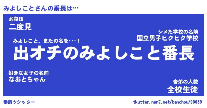| ファンタジー風あだ名 | 『ミヨフェル』『エターナルミヨシコトー』 |