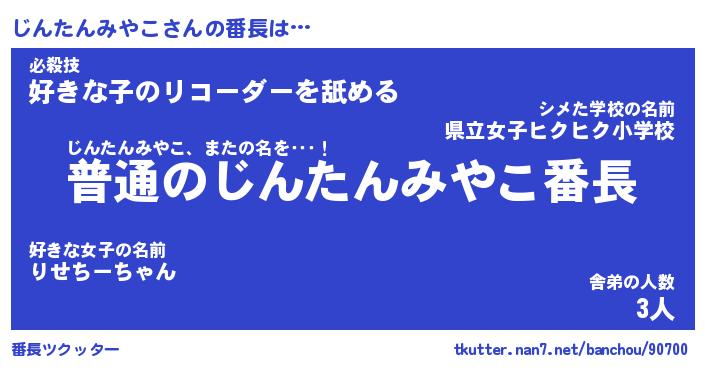 | ヒーロー風カッコイイあだ名 | 『スーパージンタンミヤコ』 |