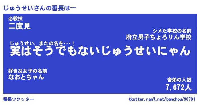 | ヒーロー風カッコイイあだ名 | 『スーパージュウセイ』『炎刃騎士ジュ』 |