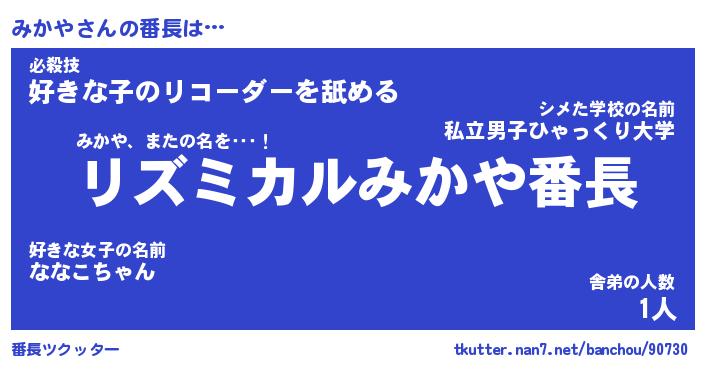 | ヒーロー風カッコイイあだ名 | 『スーパーミカヤ』『ウルトラみかやマン』 |