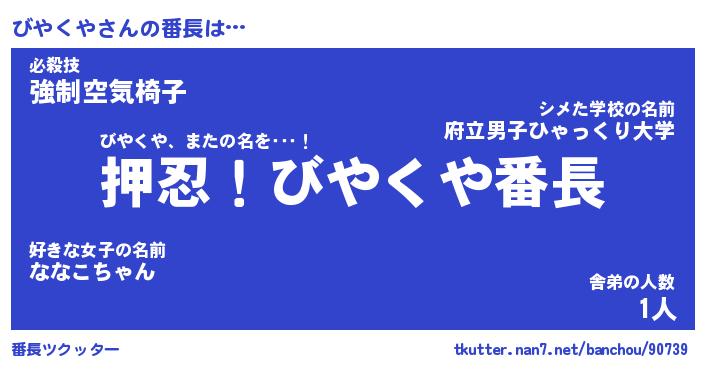 | 肩書あだ名 | 『びやくや社長』『びやくや総理大臣』 |