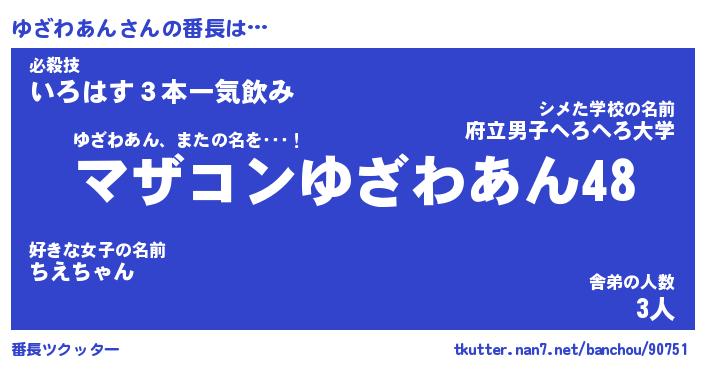 | ヘコむあだ名 | 『ゆざにゅー』『なまこ酢』『ゆざを』 |