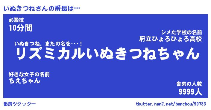 | ファンタジー風あだ名 | 『イヌフェル』『エターナルイヌキツネー』 |