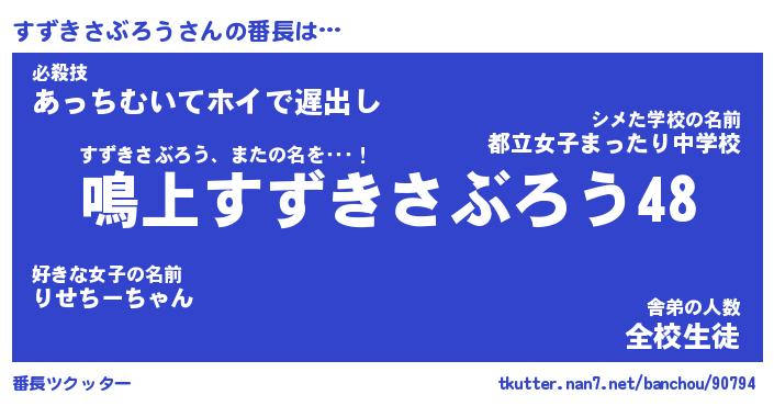 | ヒーロー風カッコイイあだ名 | 『スーパースズキサブロウ』 |
