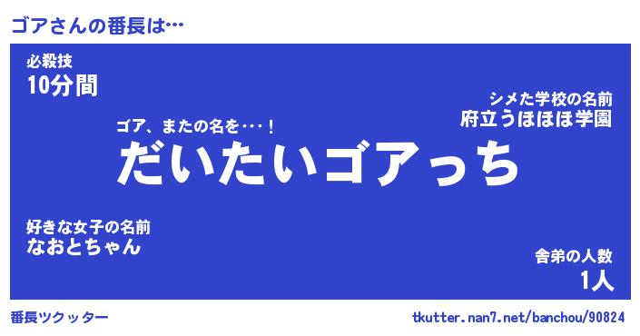 | ヘコむあだ名 | 『ゴアもー』『豆乳』『ゴアを』 |