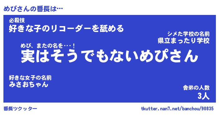 ヘコむあだ名 | 『めぴもー』『なまこ酢』『めぴっぺ』 |