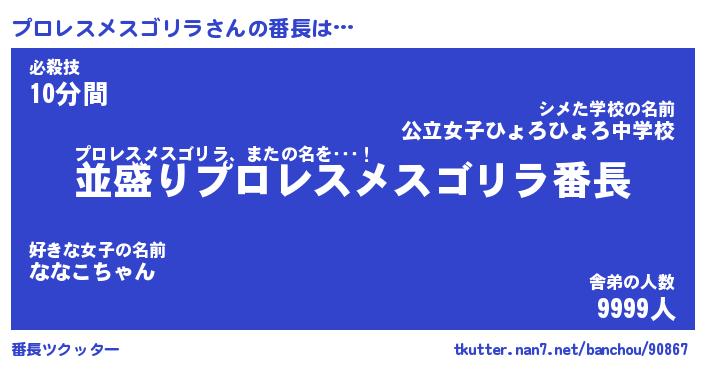 | ヒーロー風カッコイイあだ名 | 『スーパープロレスメスゴリラ』 |