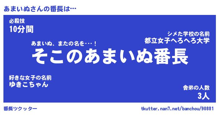 | 意味不明あだ名 | 『ペロリンあまいぬ』『永久保存あまいぬ』 |