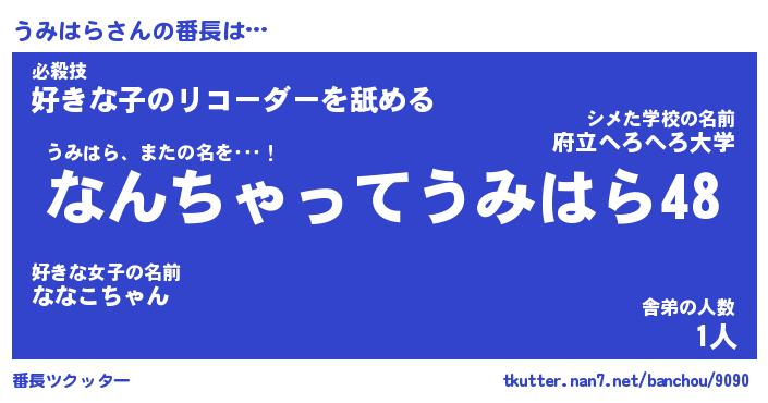 | ヒーロー風カッコイイあだ名 | 『スーパーウミハラ』『炎刃騎士ウミ』 |