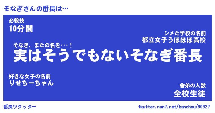 | ヒーロー風カッコイイあだ名 | 『スーパーソナギ』『ウルトラそなぎマン』 |