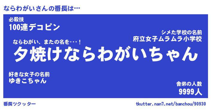 | ヒーロー風カッコイイあだ名 | 『スーパーナラワガイ』『魔戒騎士ナラ』 |