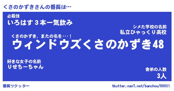 | ヒーロー風カッコイイあだ名 | 『スーパークサノカズキ』『天弓騎士クサ』 |
