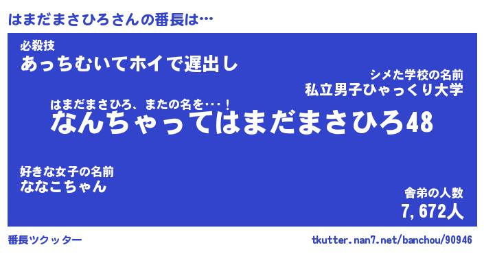 | 恥ずかしいあだ名 | 『プリティーはまだまさひろ』『はまちん』 |