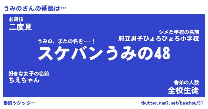 | 意味不明あだ名 | 『ペロリンうみの』『うみのフォーエバー』 |