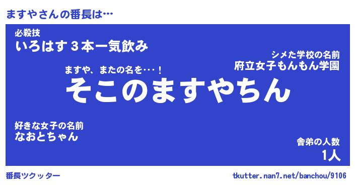 | ヘコむあだ名 | 『ますにゅー』『なまこ酢』 |