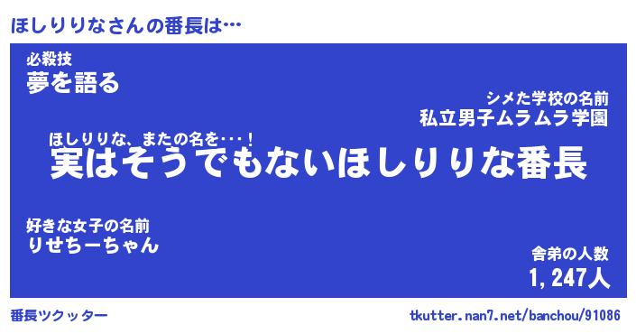 | 伝説のあだ名 | 『封印されしスナイパーほしりりな』 |