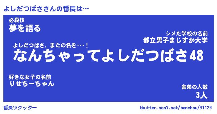 | 肩書あだ名 | 『よしだつばさ御曹司』 |