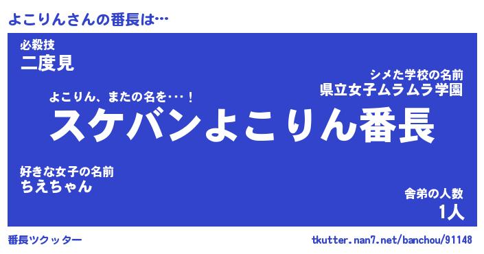 | 欧米人風あだ名 | 『マイケルよこりん』『ウサインよこりん』 |