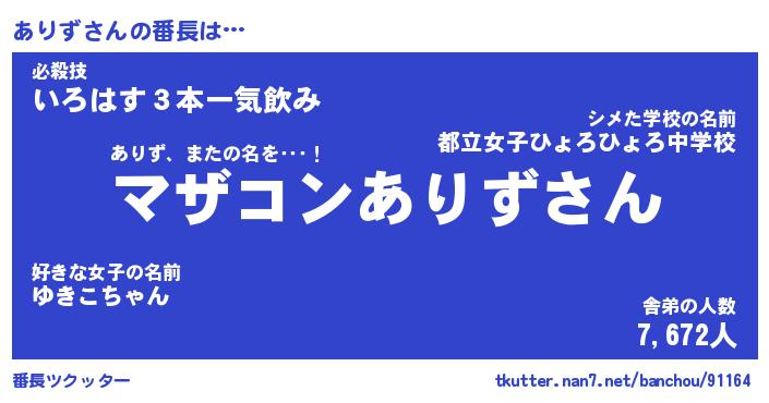 | 意味不明あだ名 | 『ペロリンありず』『ありずフォーエバー』 |