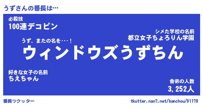 | ファンタジー風あだ名 | 『ウズフェル』『エターナルウズー』 |