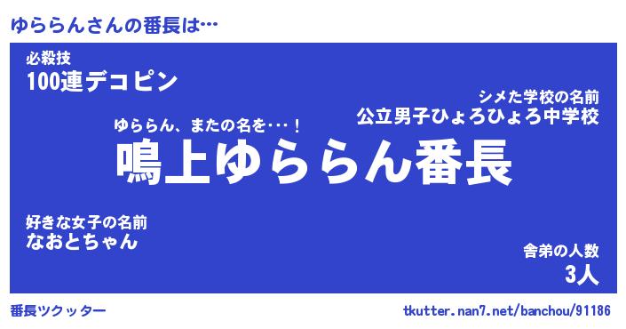| ヘコむあだ名 | 『ゆらにー』『つくし』『ゆらっちょ』 |