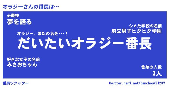 | ヒーロー風カッコイイあだ名 | 『スーパーオラジー』『魔戒騎士オラ』 |