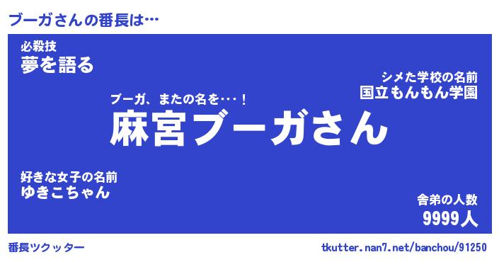 | 肩書あだ名 | 『ブーガ社長』『ブーガ大統領』 |