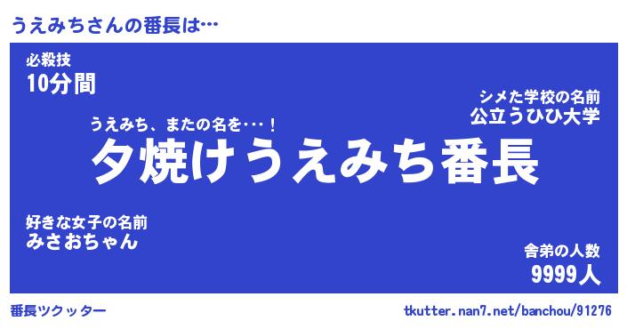 | 肩書あだ名 | 『うえみち御曹司』『うえみち総理大臣』 |
