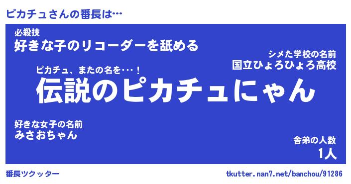 | 肩書あだ名 | 『ピカチュ社長』『ピカチュ総理大臣』 |