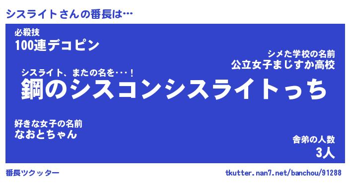 | ヘコむあだ名 | 『シスふぇ~』『つくし』『シス太郎』 |