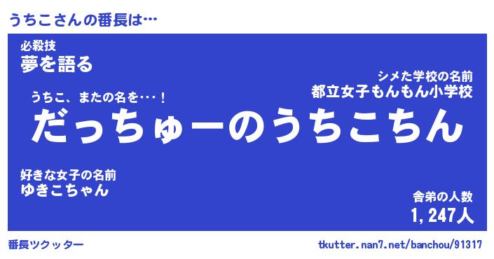 | ポケモン風あだ名 | 『ウチチュウ』『ウチコダネ』 |