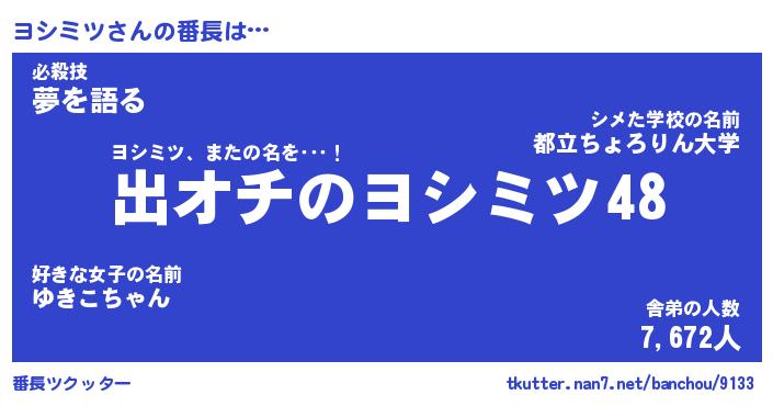 | ポケモン風あだ名 | 『ヨシチュウ』『ヨシミダネ』 |