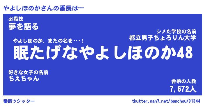 | 伝説のあだ名 | 『封印されしスナイパーやよしほのか』 |