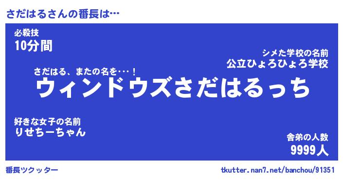 | ヒーロー風カッコイイあだ名 | 『スーパーサダハル』『天弓騎士サダ』 |