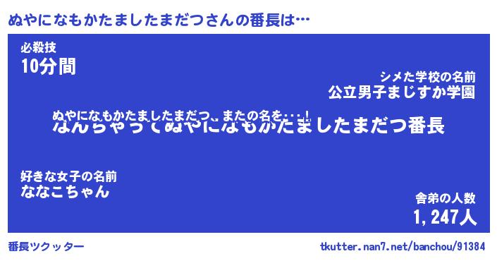 | 肩書あだ名 | 『ぬやになもかたましたまだつ店長』 |