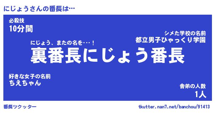 | ヒーロー風カッコイイあだ名 | 『スーパーニジョウ』『魔戒騎士ニジ』 |