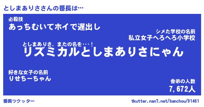 | 肩書あだ名 | 『としまありさCEO』『としまありさ副担任』 |